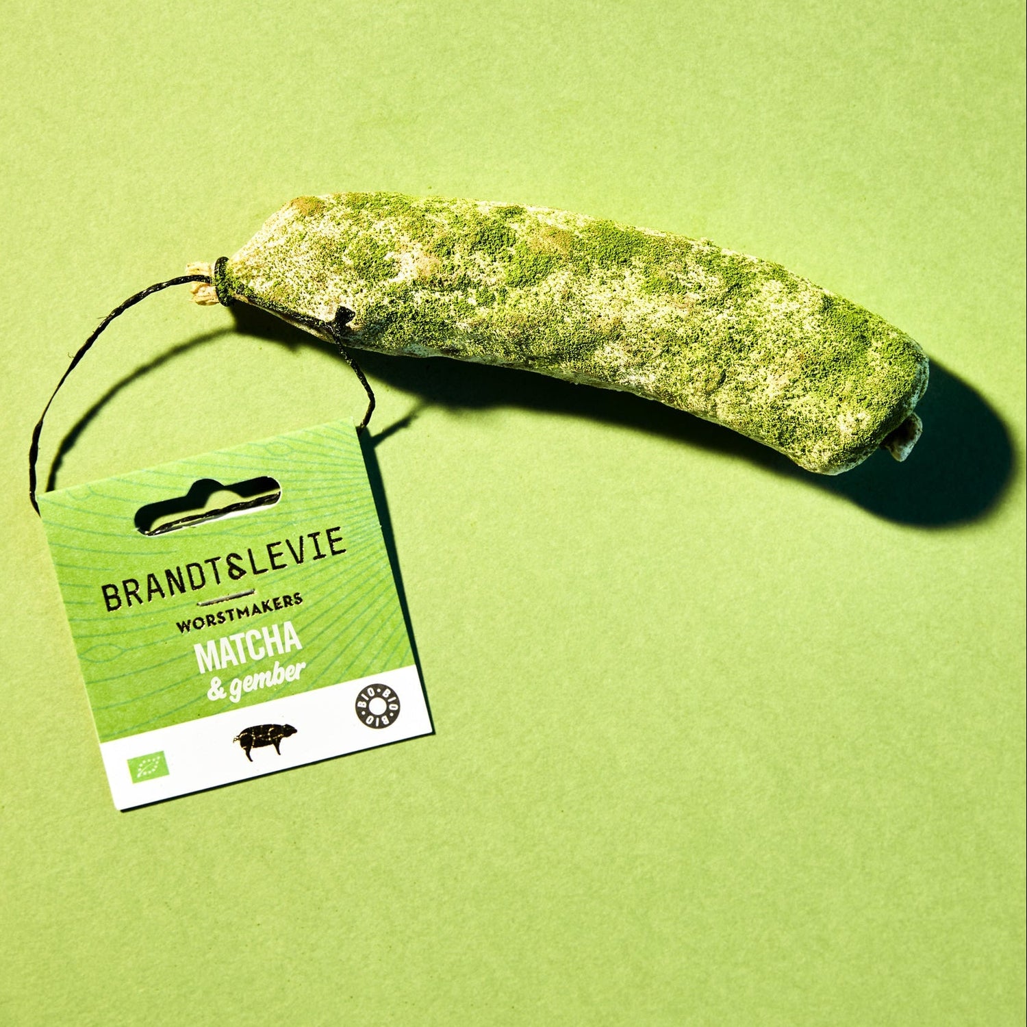 Daar is hij dan. Onze Paas-seasonal: “Matcha & Gember”! Na een lang ontwikkelproces zijn we erin geslaagd onze eigen matcha-schimmelcultuur te creëren die de worsten een diepe groene gloed geeft.
