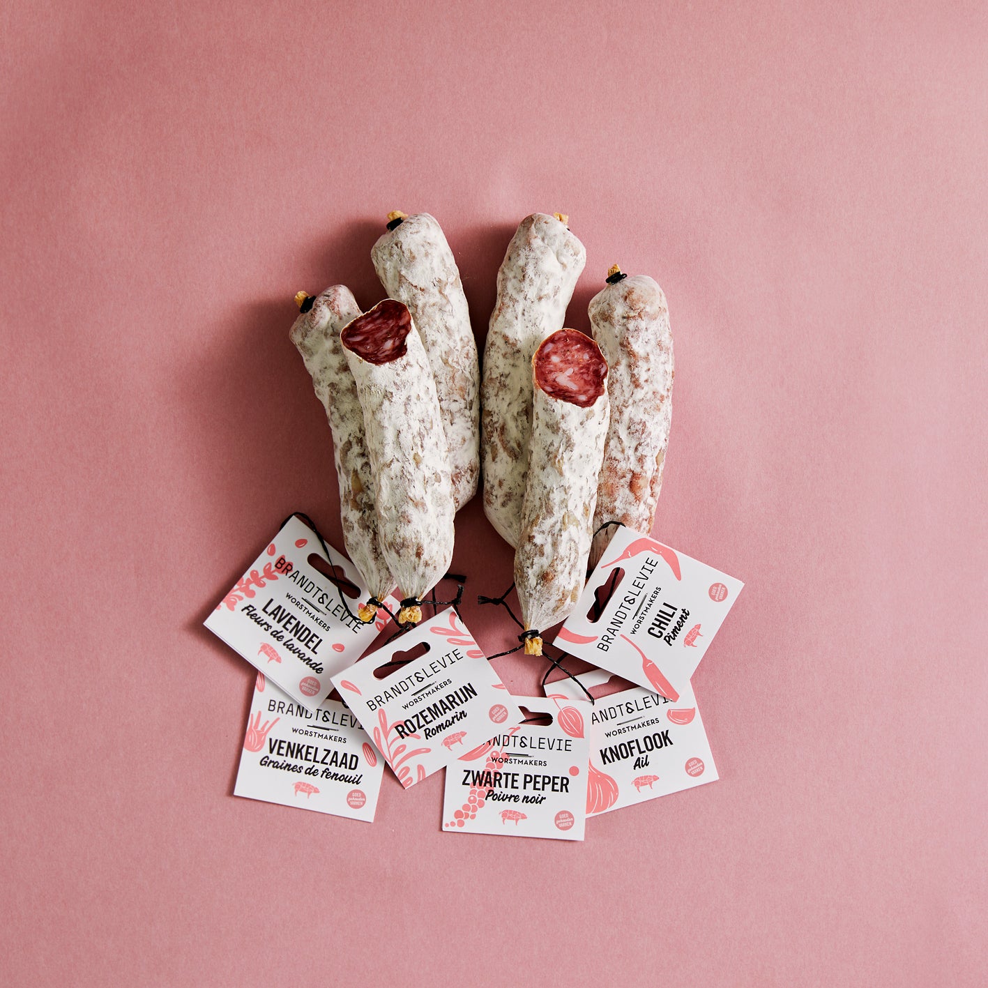 Dé box met onze droge worst klassiekers, ofwel de bekende smaken onder het Brandt & Levie Pink label. Stuk voor stuk van de beste ingrediënten en uitsluitend van goed gehouden varken.